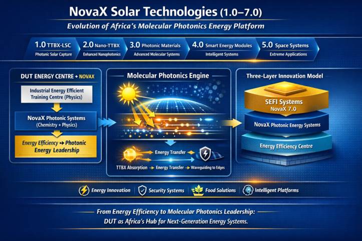 NovaX is a pioneering deep-tech platform integrating molecular photonics, nanotechnology, AI, and infrastructure systems into a unified framework. It introduces the Molecular Photonics Energy Industry (MPEI), positioning Africa at the forefront of next-generation energy systems.